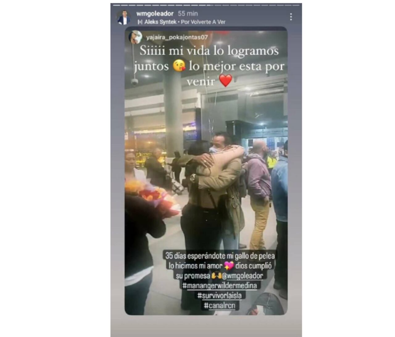 “35 días esperándote, mi gallo de pelea. Lo hicimos amor, Dios cumplió su promesa”, escribió la mujer junto a una foto en la cual se les puede ver a ambos abrazándose en el aeropuerto.
