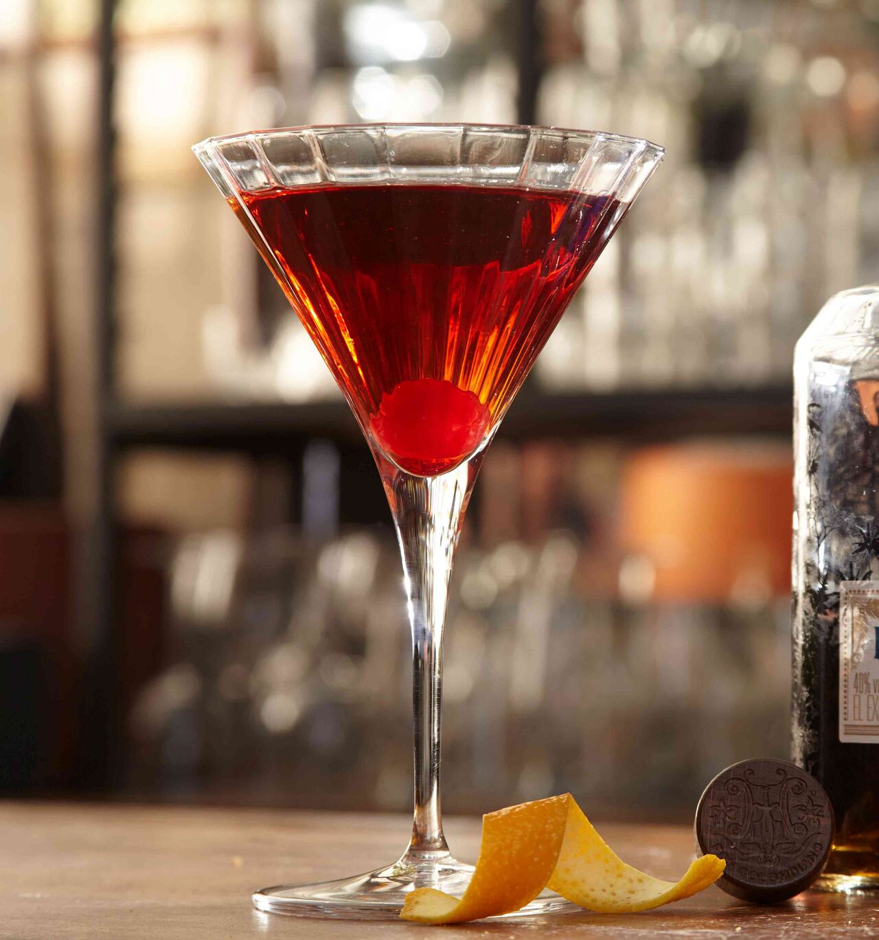 En un mezclador agregar Ron La Hechicera, Vermouth Rosso, gotas amargas y refrescar con hielo. Servir en una copa Martini y decorar.