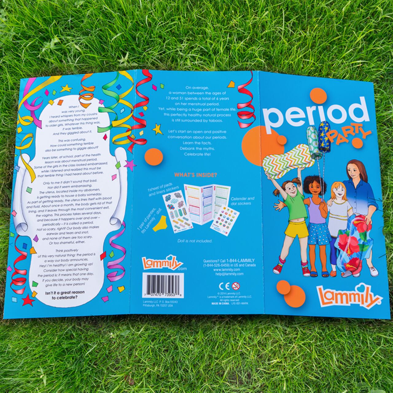 "Period Party" es un paquete de accesorios adaptable a cualquiera de las más de 40 mil Lammilys que se han vendido en el mundo. Su costo es de 10 dólares (Unos 30 mil pesos al cambio de hoy) e incluye un libro educativo sobre los cambios hormonales en la mujer, un par de ropa interior que se adapta a la muñeca, 18 adhesivos con forma de toalla higiénica y otros con pegatinas de colores y un calendario. (Lee también El síndrome de la Barbie)