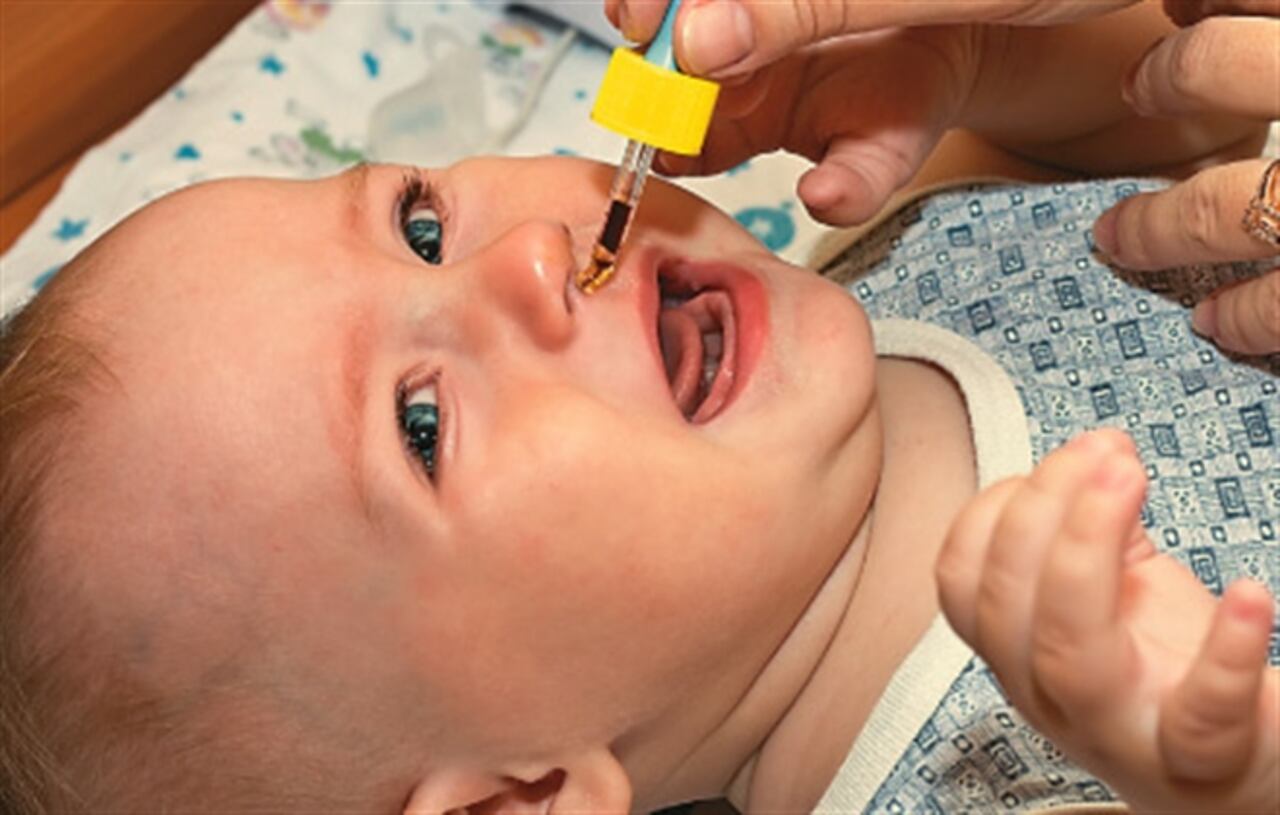 Cuando hay gripa, la nariz se tapa porque se inflama la mucosa e impide el paso del aire. Los especialistas recomiendan el uso de suero fisiológico o solución salina, que ayudan a destapar los conductos de la nariz. Antes de hacerlo, debes consultar al pediatra para que éste te indique la cantidad necesaria. Se recomienda aplicar las gotas tibias para que la limpieza sea más rápida y efectiva.