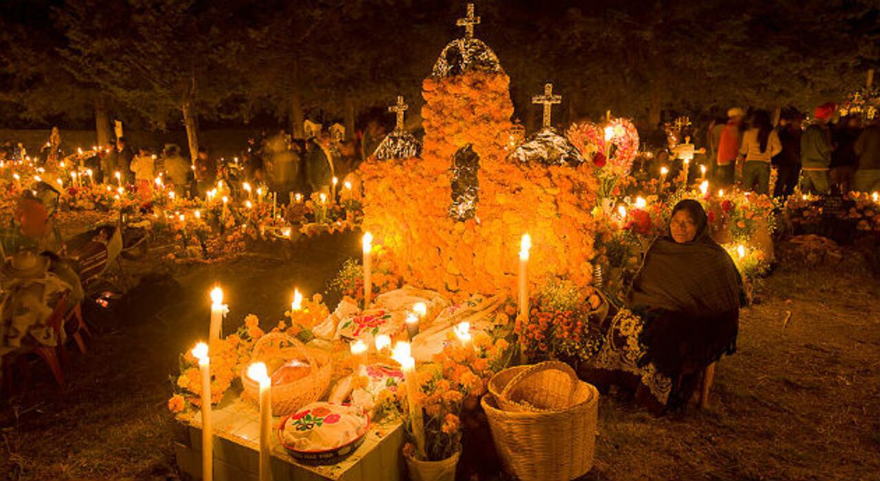 Calaveras de colores, comida en las tumbas y flores compartidas entre las familias, así es el Día de Muertos, o Día de los Fieles Difuntos, en México.