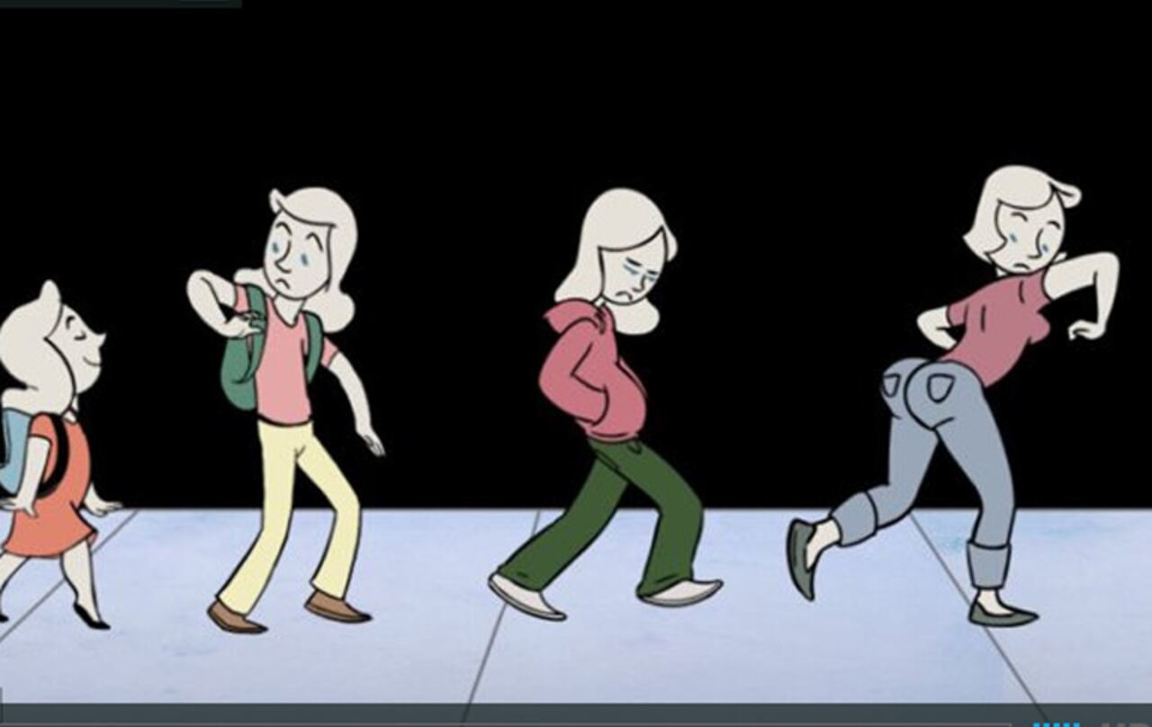 Una chiquilla que no se ocupa de su cuerpo. Luego, una preadolescente a la que el malhumor le gana. Sus senos y sus nalgas empiezan a aparecer como un par de extraños, hasta que ella se acostumbra a verse diferente. Así empieza a relatar la realizadora y animadora Celia Bullwinkel este corto animado denominado Sidewalk que hizo, precisamente, para evidenciar todos los cambios físicos por los que pasan las mujeres, y que van unidos a las emociones.