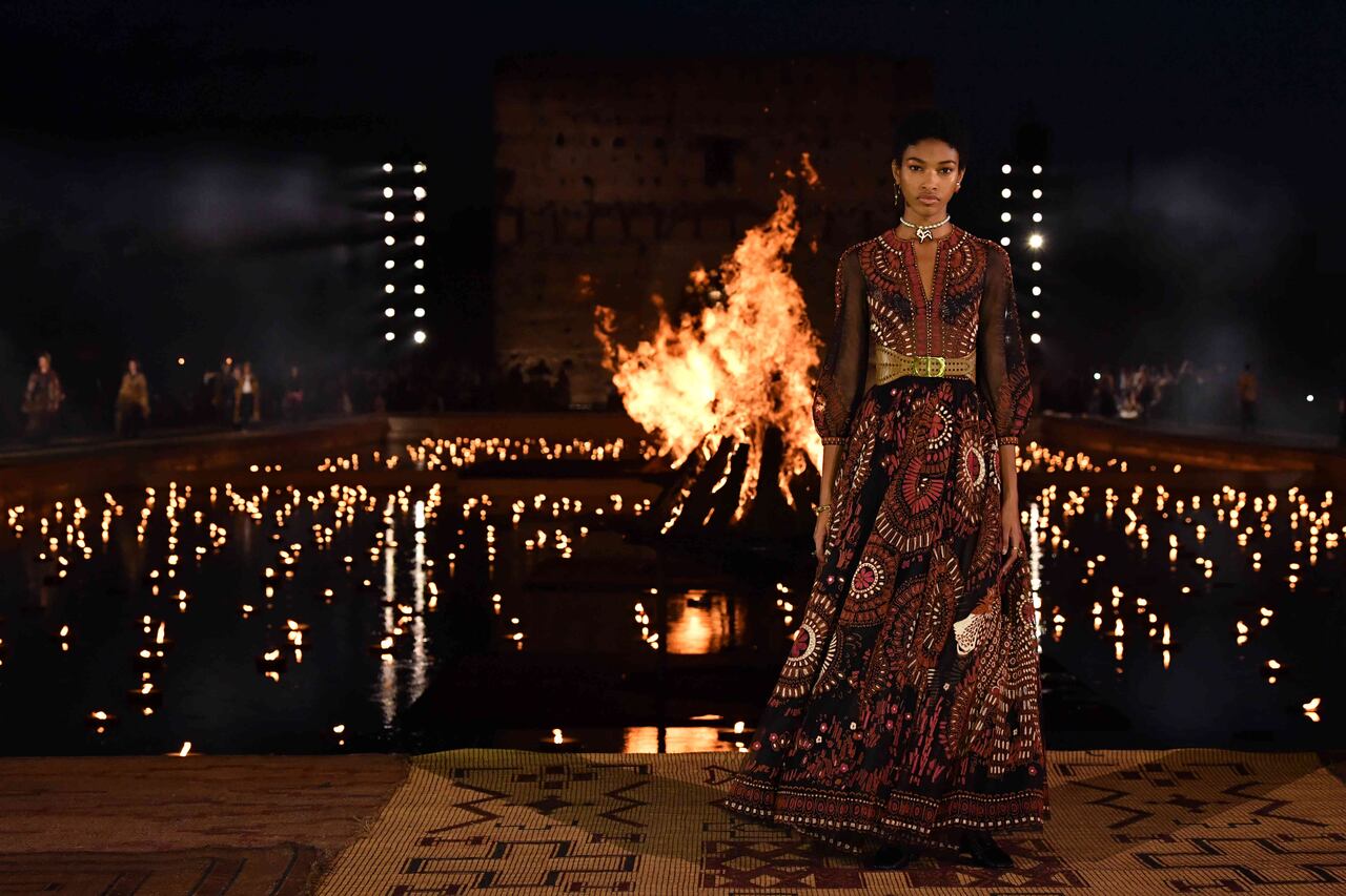 La casa francesa escogió a Marrakesh como escenario de su última colección crucero que deslumbró por no sólo por su puesta en escena sino por la forma en que se incluyeron estampados de África occidental junto a las siluetas femeninas y fluidas ya características de Maria Grazia Chiuri, su directora creativa.