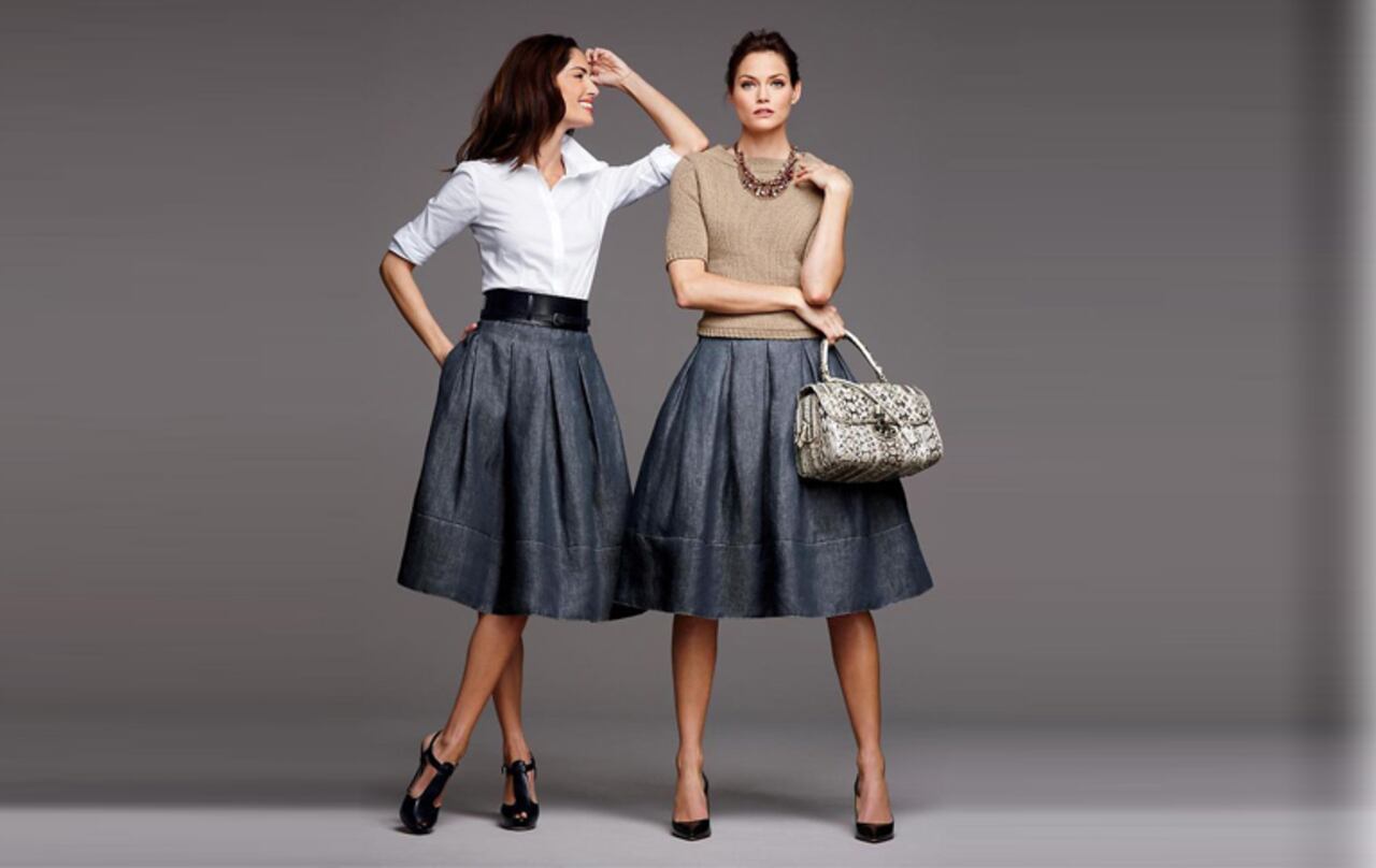 Si la combinación tradicional -y casi perfecta- es usar un jean con chaqueta tipo sastre y unos bellos stilettos, usarlo con una falda midi (de prenses y vuelo), es un look que revela riesgo, estilo, elegancia y personalidad.