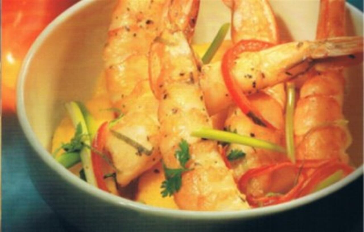 Langostinos al limón con ensalada de mango biche