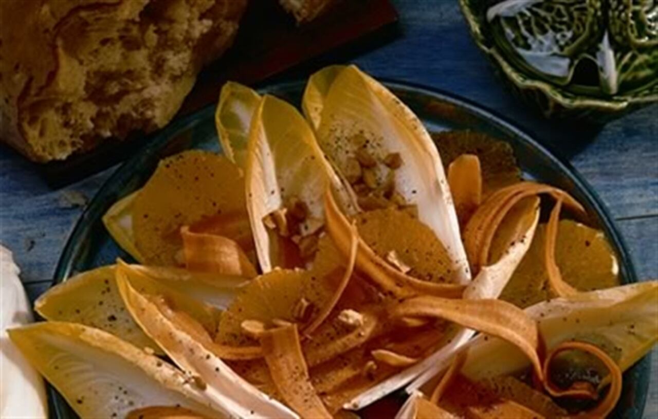Ensalada de endibias, zanahoria y naranjas.